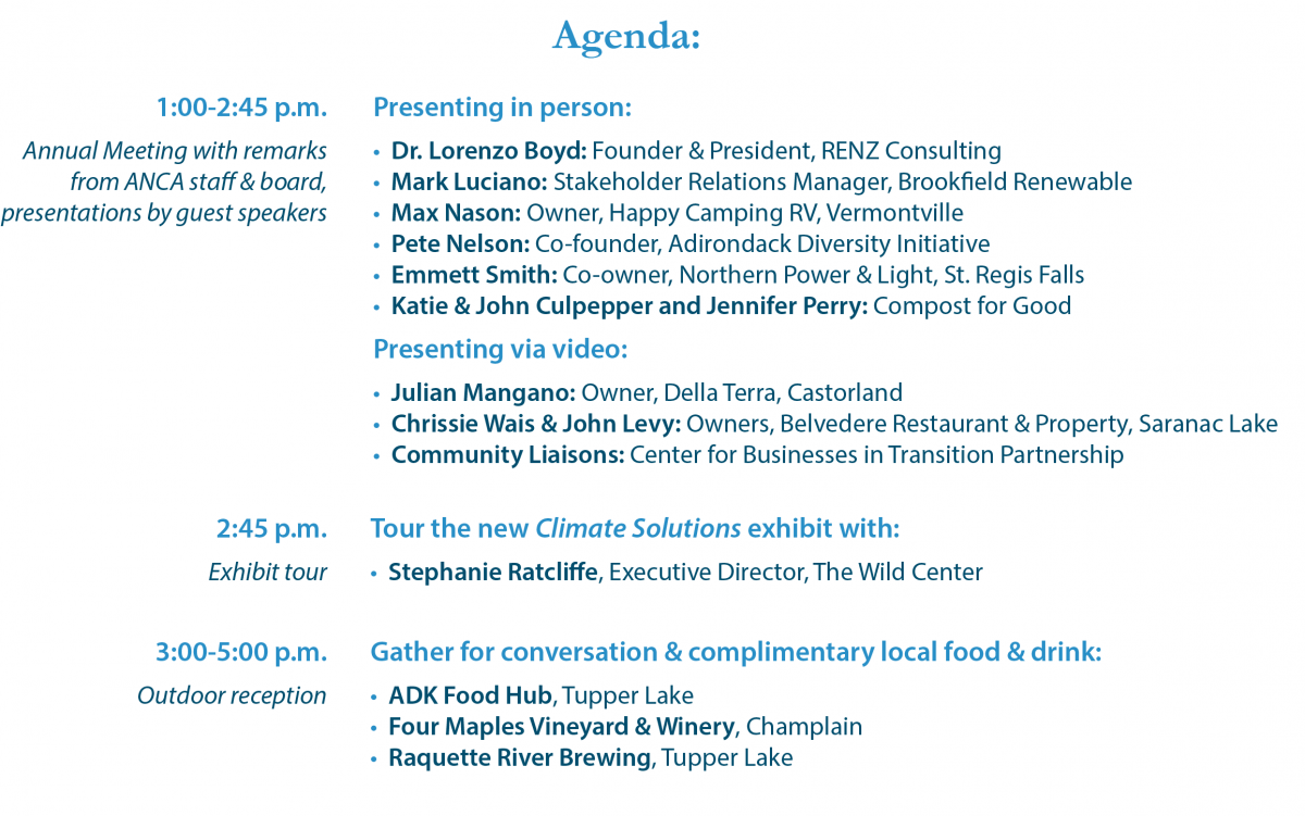 Thanks to all who joined us for ANCA’s 2022 Annual Meeting, where we explored the future of the North Country economy with a focus on small businesses, local food systems, clean energy, and diversity, equity & inclusion.