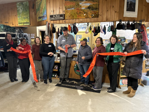 Photo 1: St. Regis Canoe Outfitters and Saranac Lake Area Chamber of Commerce hosted a ribbon cutting event on December 7, 2023 to celebrate the successful ownership transition from Dave and Rivka Cilley to Maeghan Farnham and Steve Cerri earlier that year.