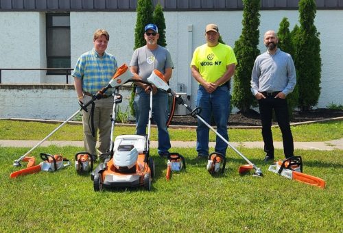 Town of Plattsburgh staff with electric landscape equipment purchase with CEC program funding