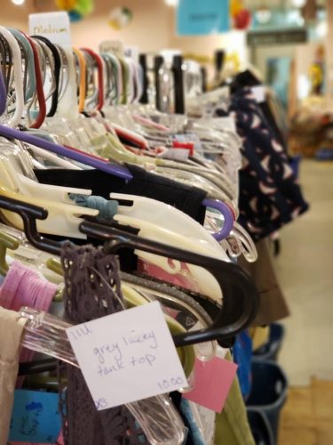 Top photo: Consignment clothing on the racks of Main Street Exchange in Saranac Lake.