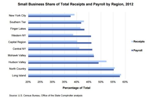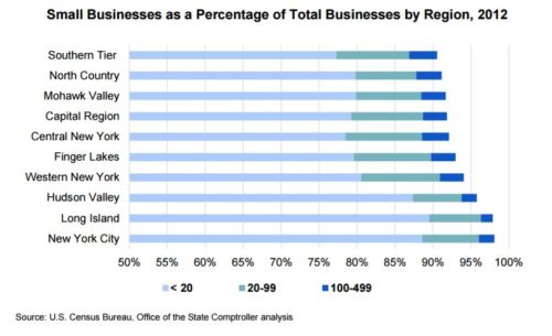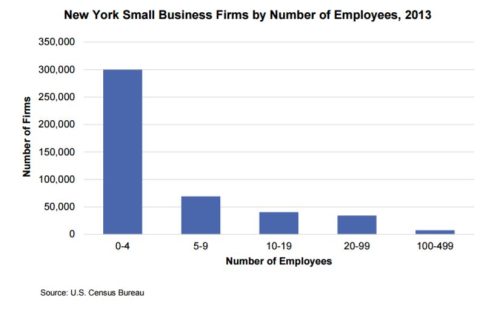 A 2016 report from the Office of the New York State Comptroller describes how “microbusinesses” — firms with fewer than ten employees — make a significant impact on the state’s economy: “Of the small businesses with paid employees in 2013, almost two-thirds had fewer than five employees, with over 80 percent having fewer than ten employees. These 369,000 microbusinesses provided nearly 943,000 jobs with total payroll close to $40 billion. Businesses with fewer than 20 employees reported total employment of nearly 1.5 million, with total payroll of $63.2 billion.”